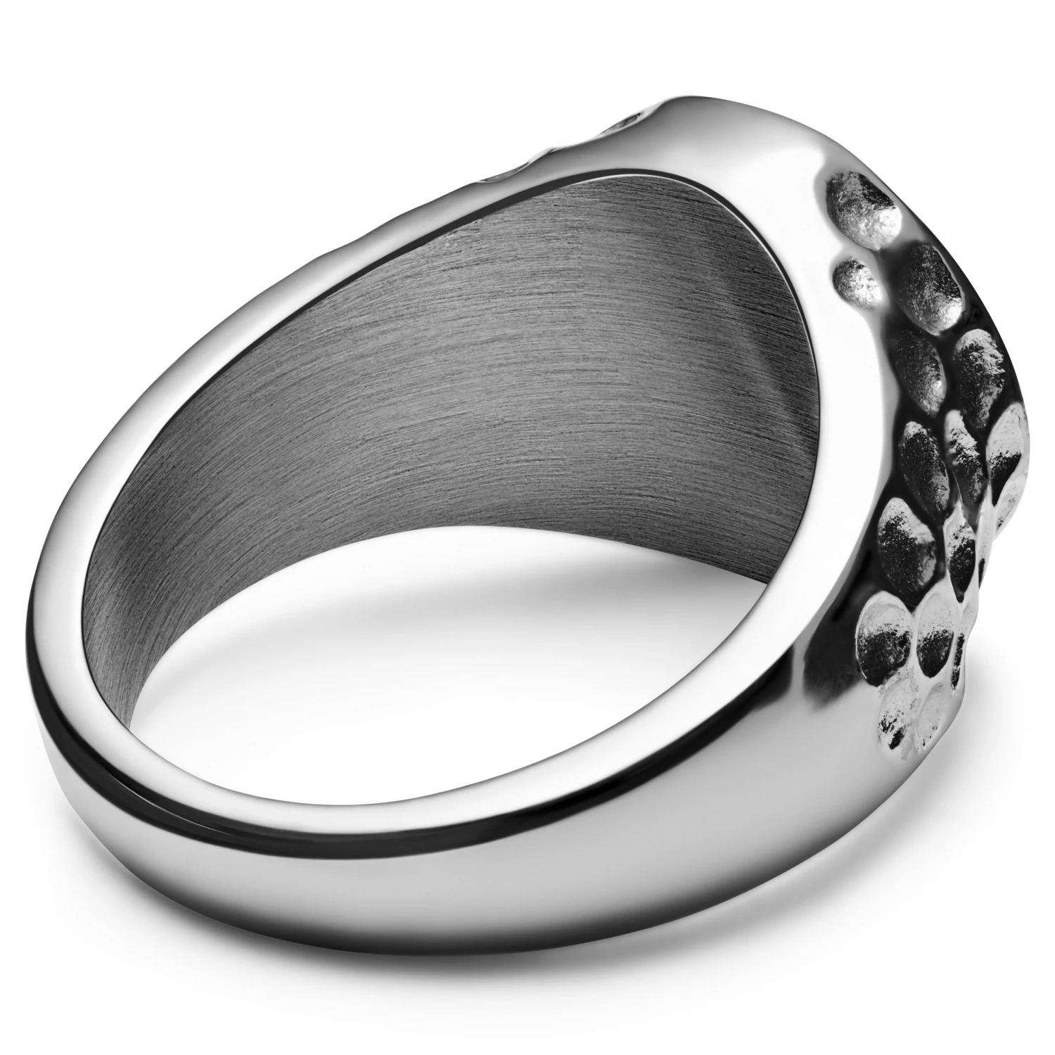 La finition martelée légèrement rugueuse de ce modèle contraste avec sa section inférieure en acier inoxydable poli. Sa face interne est en acier brossé pour lui donner une texture supplémentaire et dissimuler les griffes et les rayures que vous pourriez lui faire subir lors de vos aventures.