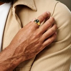 Lucleon Chevalière argentée Gravel Len à pierre d’onyx rouge