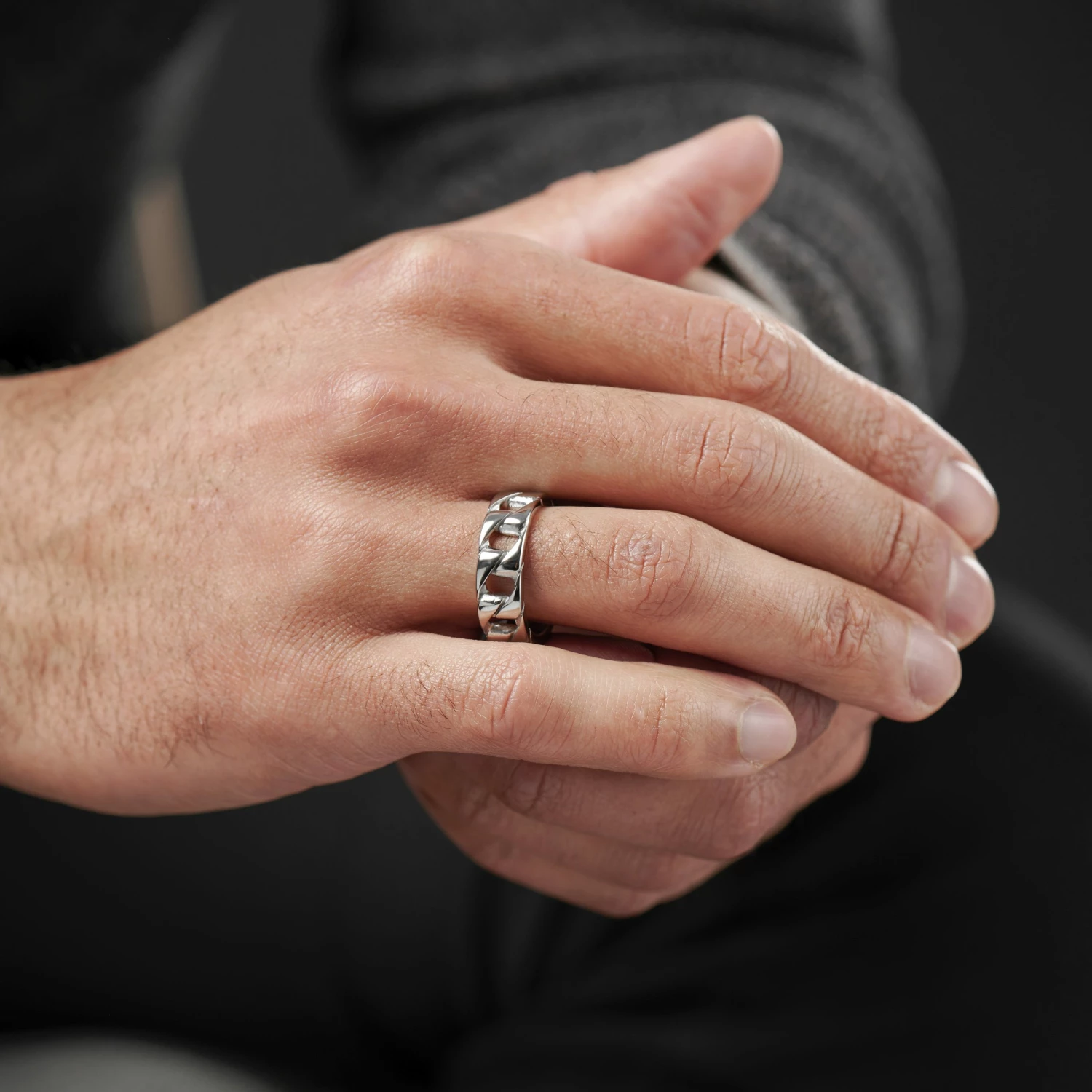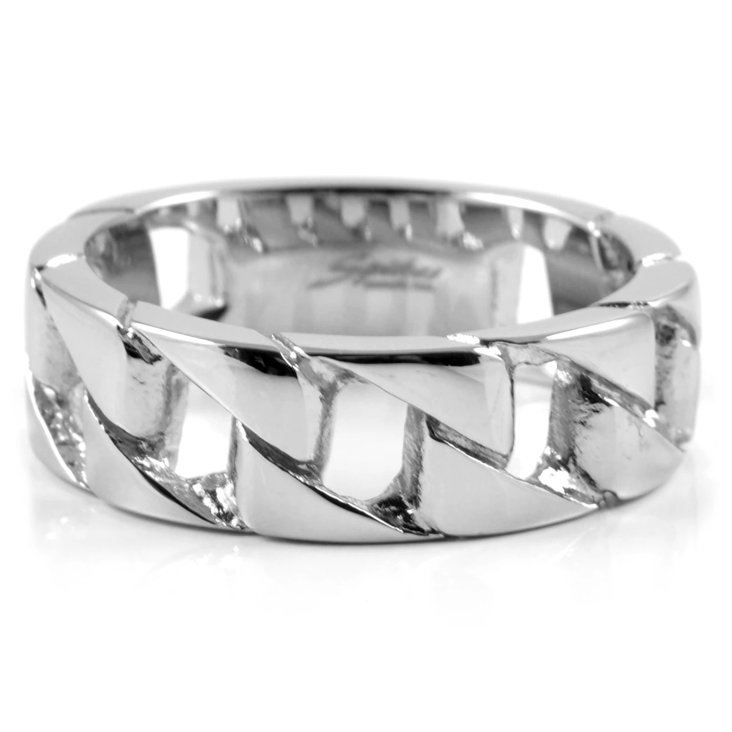 Cet anneau ressemble à d’une chaîne d’acier et est fabriqué à partir d’acier haut de gamme avec un poli miroir.