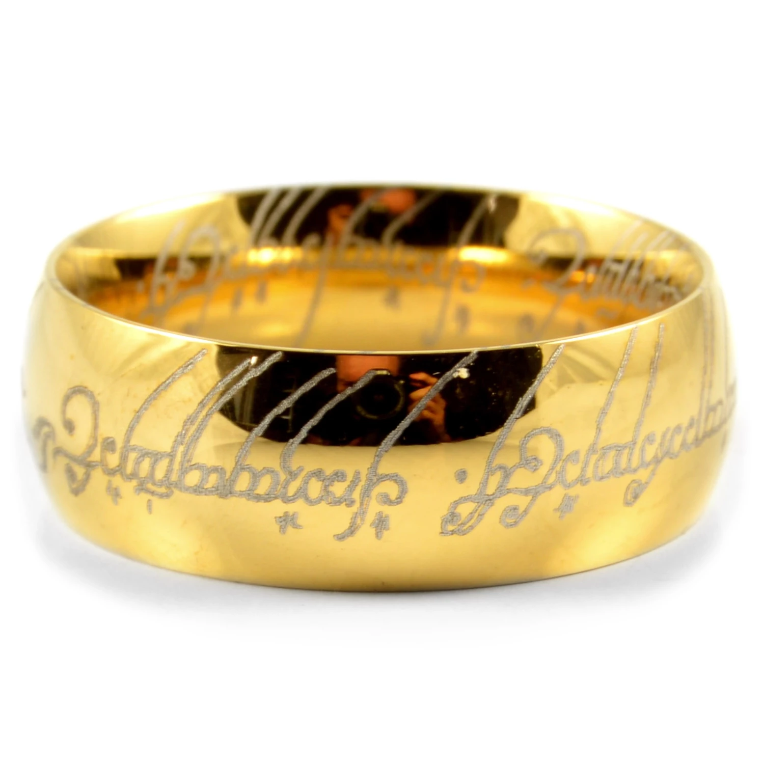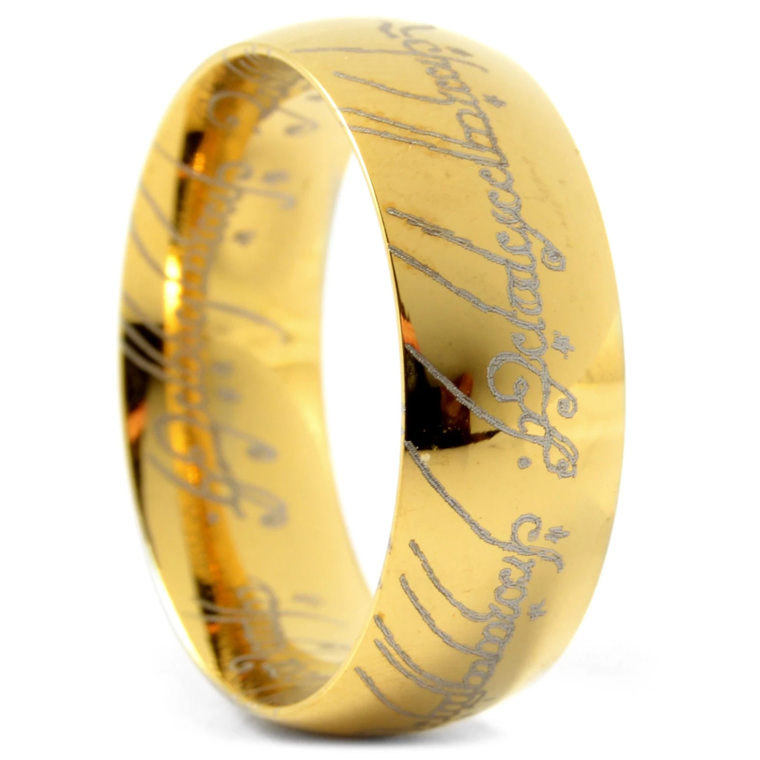 Il mesure 8 mm de large et sa forme douce et gravé en forme de dôme doré lui confère un look intemporel.