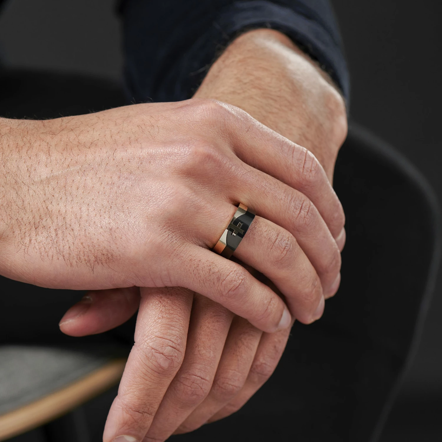 Un anneau moderne noir et doré qui peut être scindé en deux parties indépendantes…ou pas, au gré de vos envies.