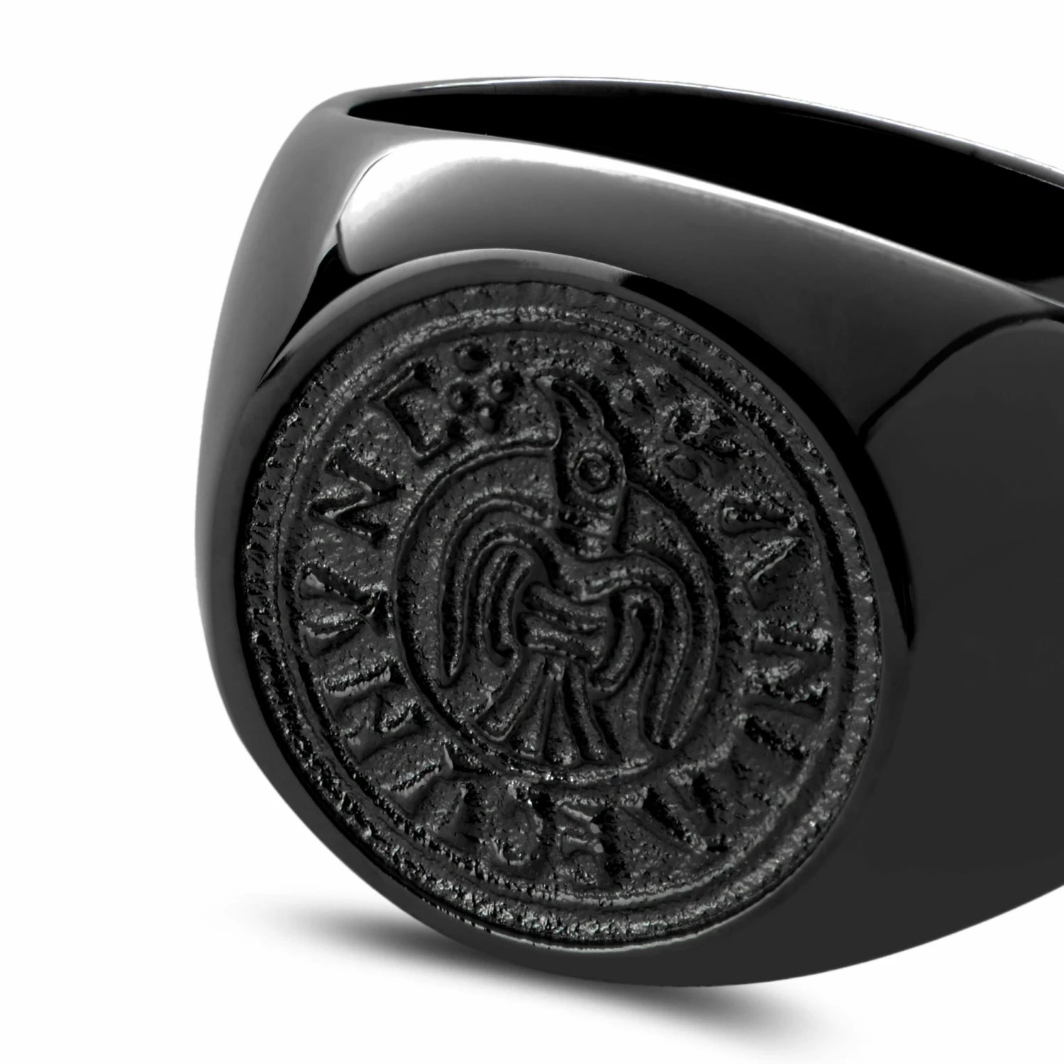 Fabriquée en acier inoxydable qui ne ternit pas, cette chevalière masculine est ornée d’une pièce de monnaie datant de l’époque où les Vikings régnaient.