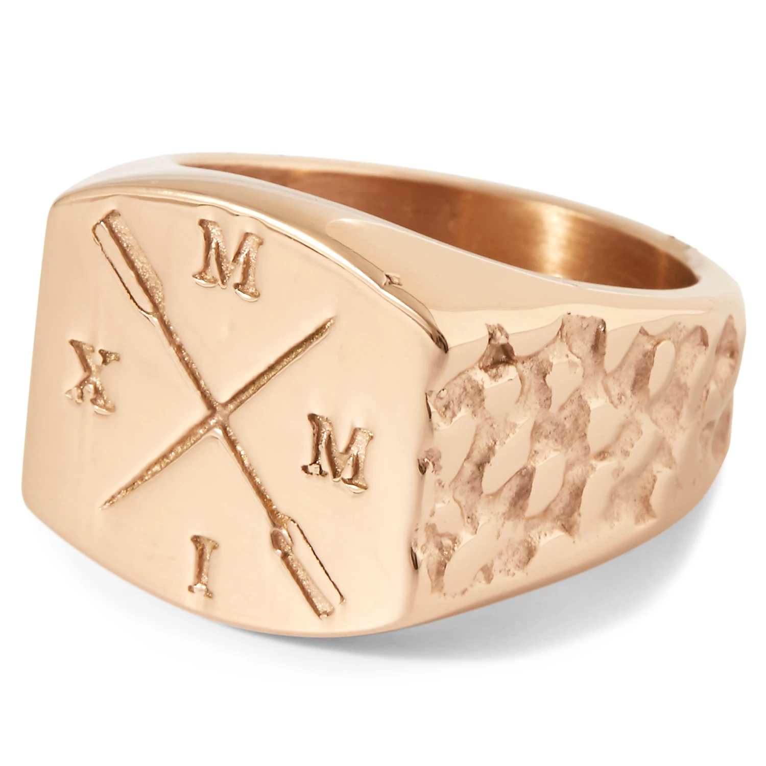 Une chevalière subtilement bling, décorée de motifs avirons très classiques et rehaussée d’une finition moderne de par ses gravures qui lui procurant un aspect brillant et rugueux au toucher.
