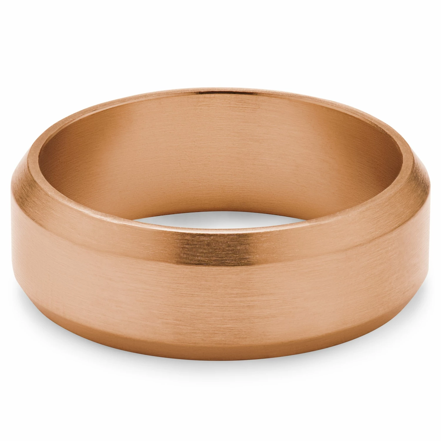 La couleur or rose de cet anneau en acier inoxydable est obtenue en appliquant un revêtement PVD consistant à surchauffer du nitrure de titane jusqu’à ce qu’il atteigne l’état de plasma et fusionne avec la surface du métal, afin d’obtenir une couleur qui ne ternira pas et n’écaillera pas.