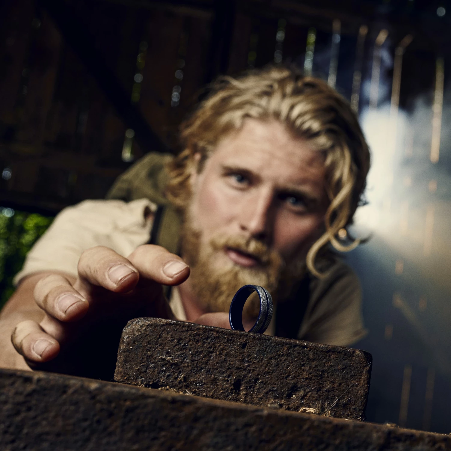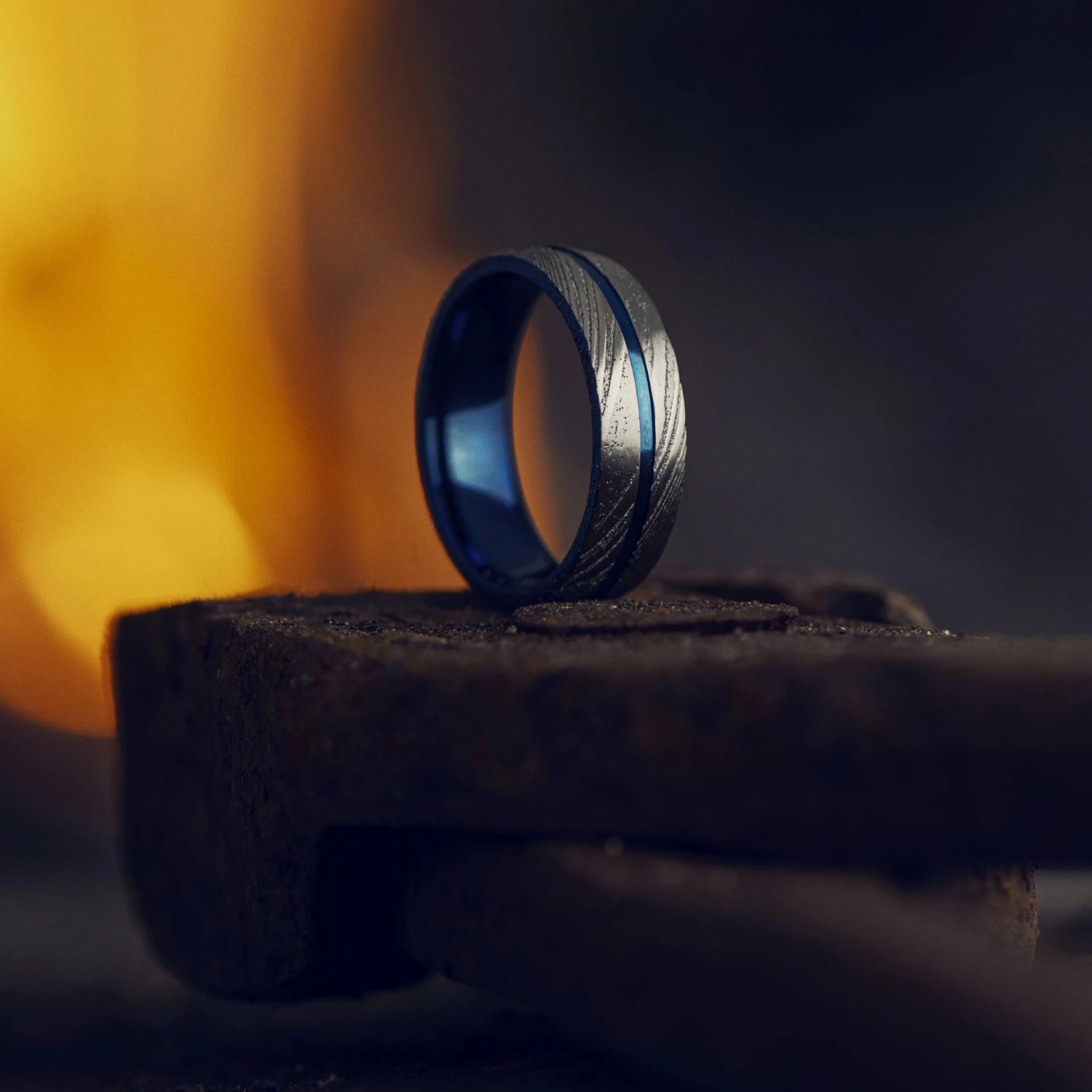 L’acier de Damas était redouté par les croisés au Moyen-Âge en raison de sa très grande solidité et de son extrême tranchant. Il est formé en forgeant deux types d’acier ensemble afin de créer un motif singulier : l’acier parfait pour obtenir une bague au look unique en son genre. Telle une empreinte digitale, elle n’appartiendra qu’à vous.