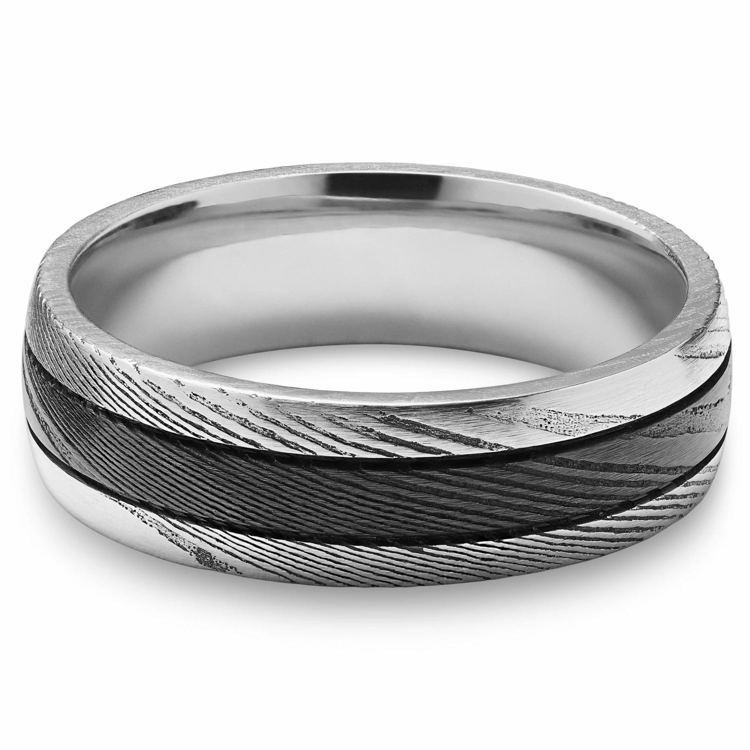 L’acier de Damas était redouté par les croisés au Moyen-Âge en raison de sa très grande solidité et de son extrême tranchant. Il est formé en forgeant deux types d’acier ensemble afin de créer un motif singulier : l’acier parfait pour obtenir une bague au look unique en son genre. Telle une empreinte digitale, elle n’appartiendra qu’à vous.