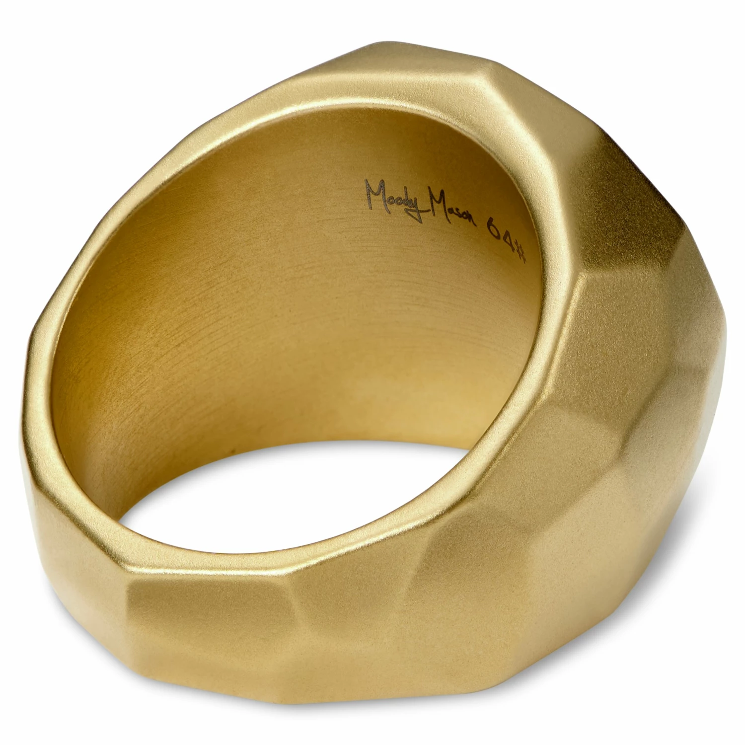 Sertie d’une pierre synthétique lapis-lazuli et décorée de facettes sculptées, cette chevalière pour hommes de grande taille n’est pas faite pour les petits gabarits. Elle a été conçue pour les hommes qui ont une histoire à raconter… et une force incroyable dans le poignet.
