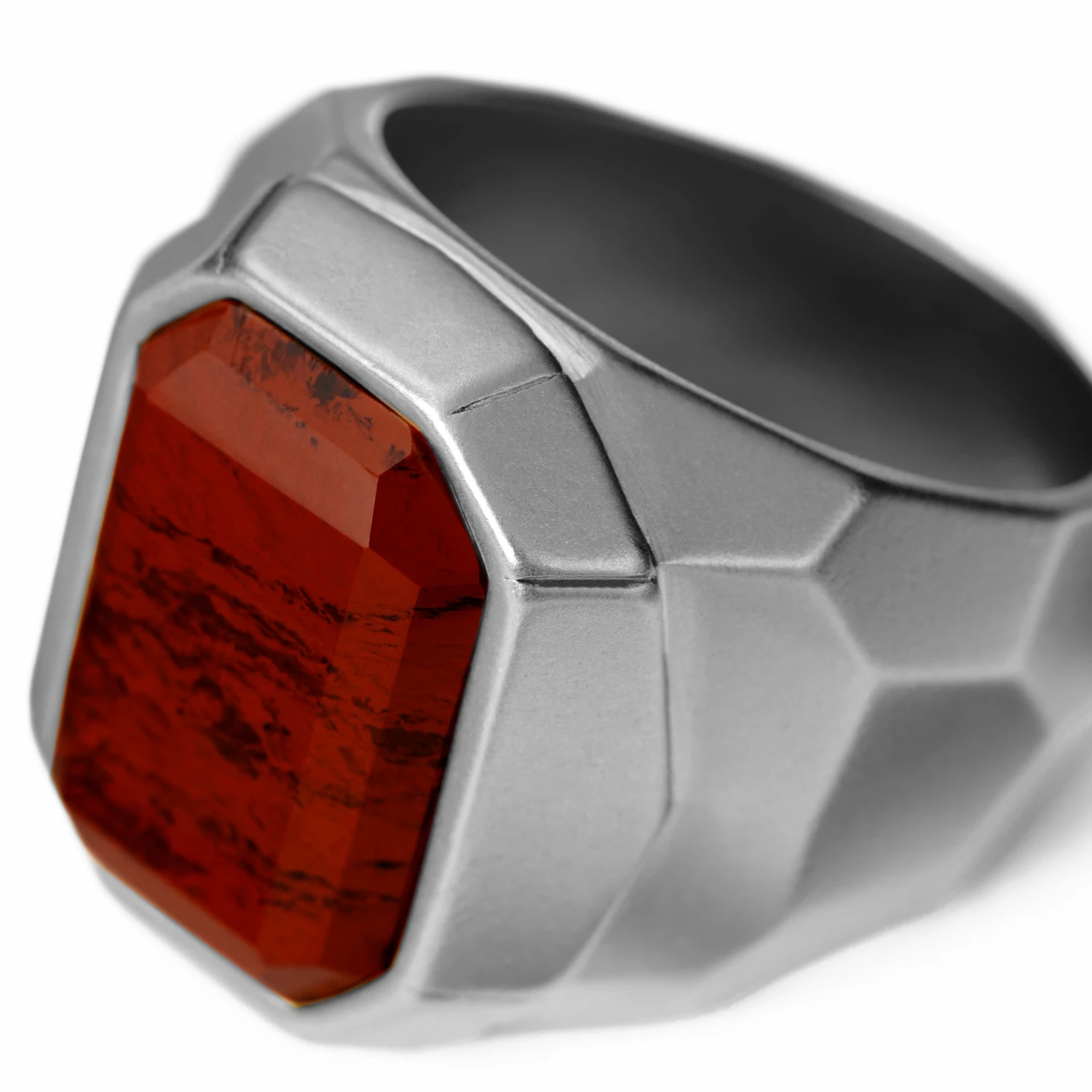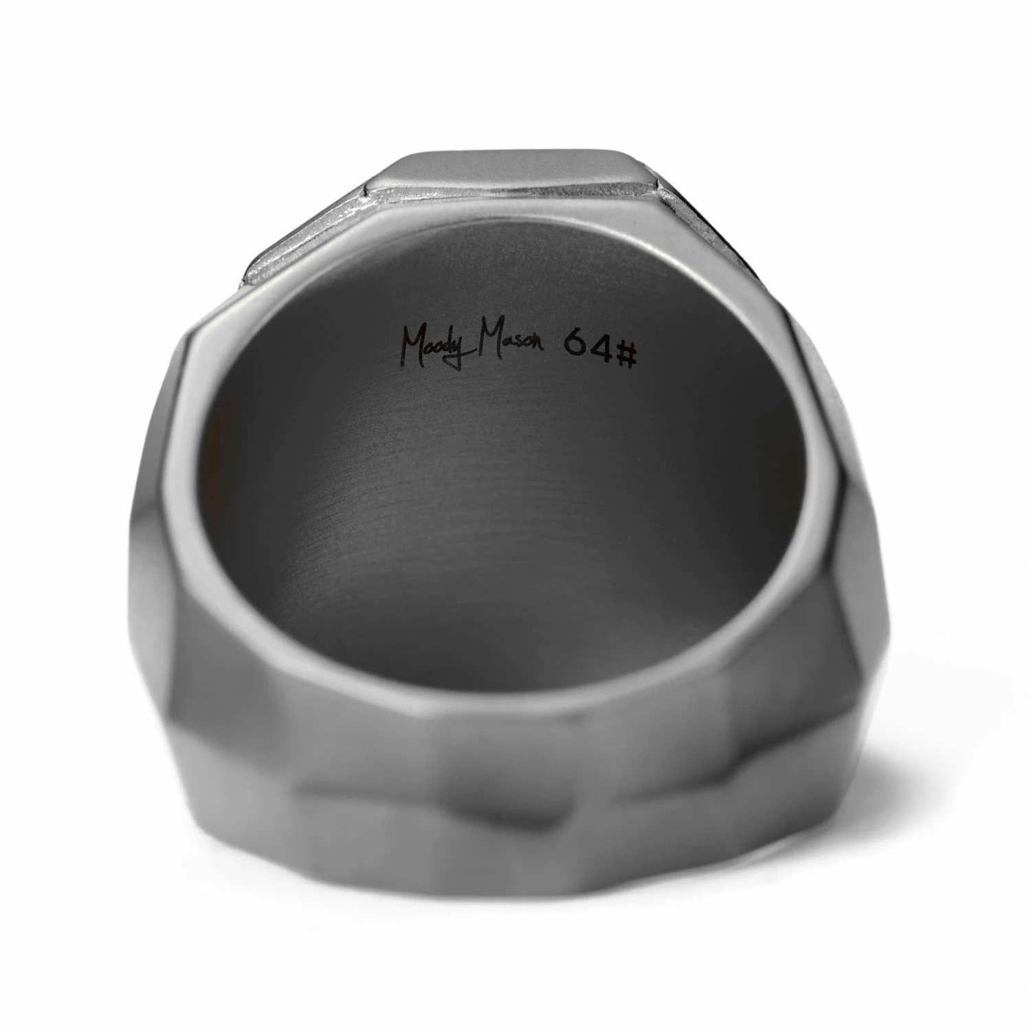 Fabriquée en acier inoxydable solide, cette chevalière argentée de grande taille met en valeur cette pierre mythique. Des facettes sculptées sur ses parois latérales et un intérieur lisse pour un ajustement confortable parachèvent son magnifique design.