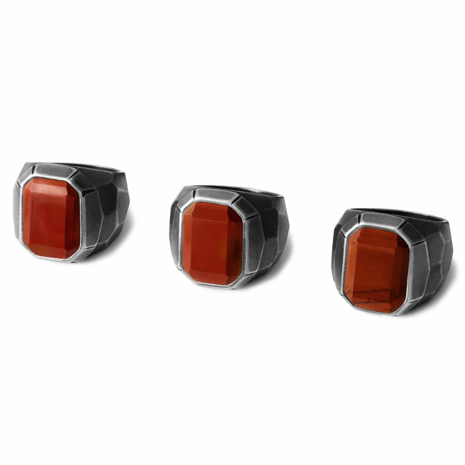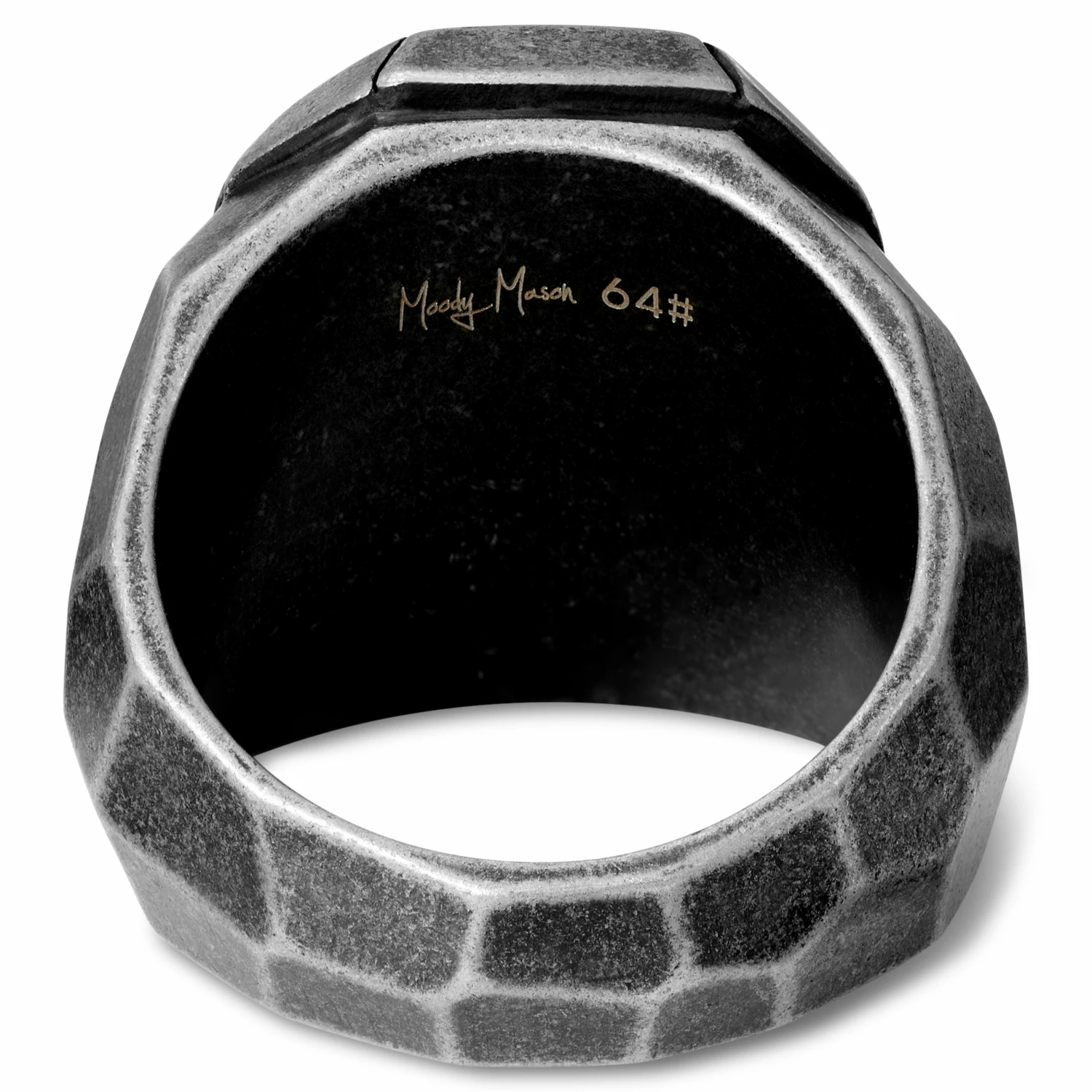 Forgée en acier inoxydable résistant, cette chevalière pour homme de couleur gris antique n’est pas pour les timides. Il s’agit d’un bijou massif qui met en valeur cette légendaire pierre de jaspe rouge et demande une certaine force afin de pouvoir la porter.