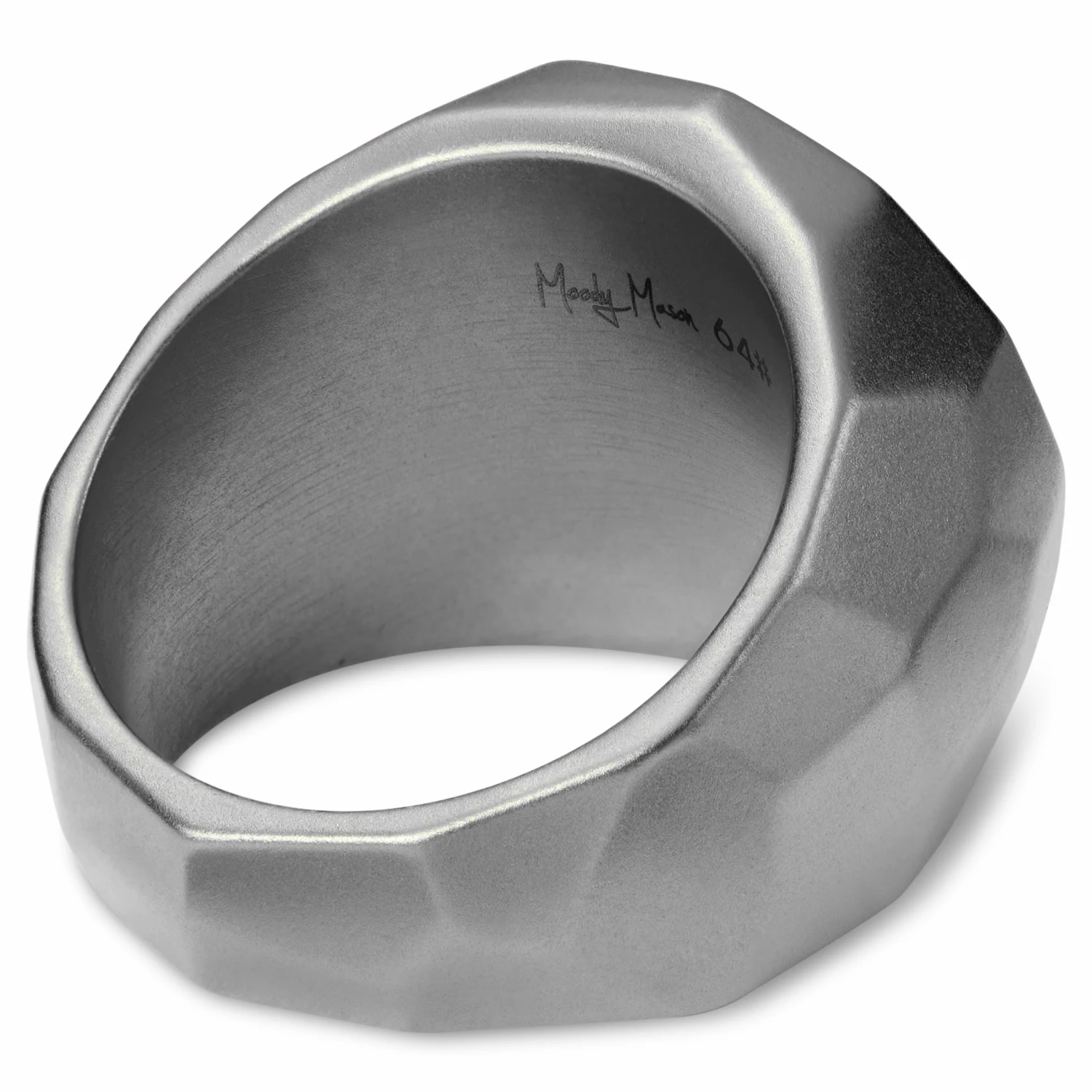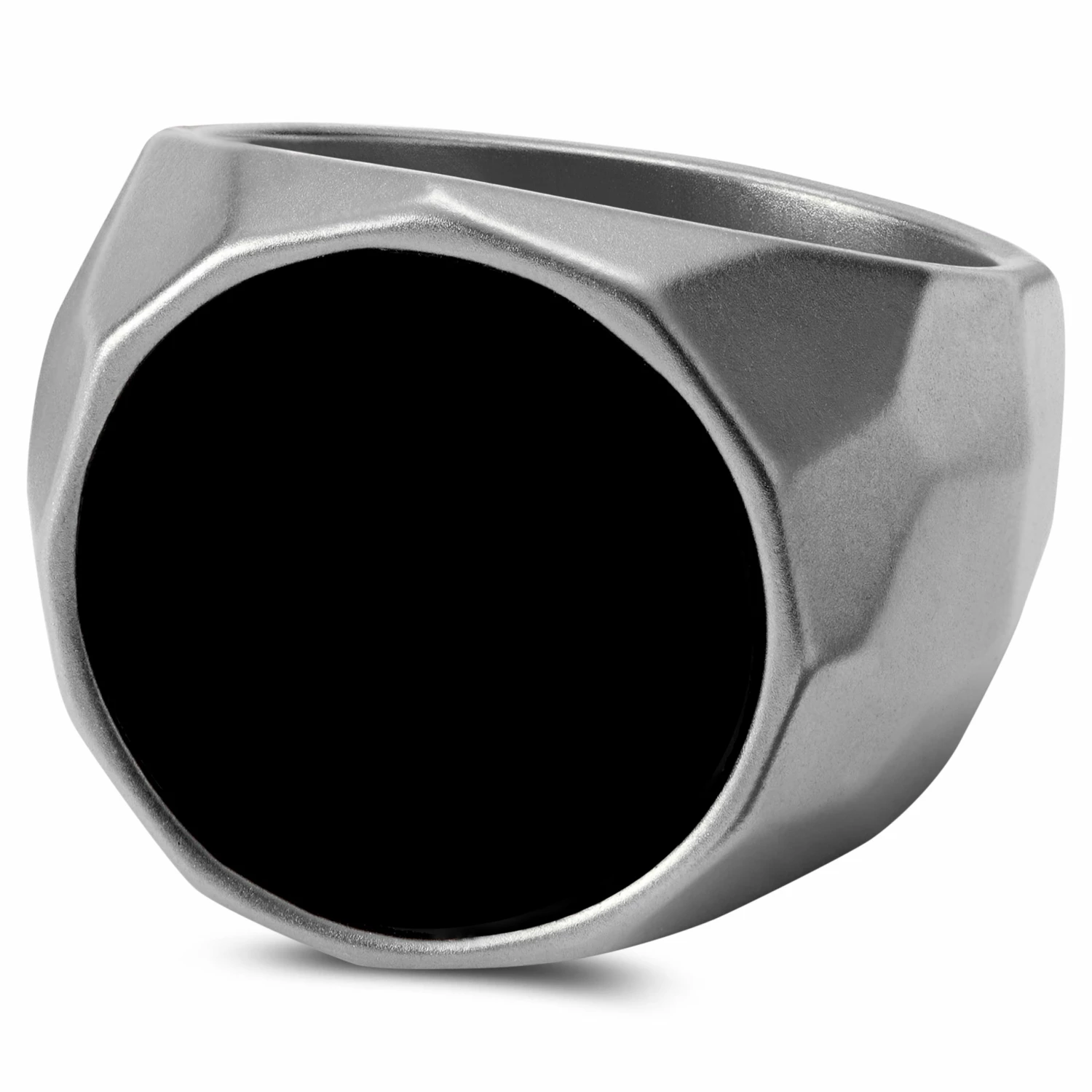 Cette chevalière pour homme en acier inoxydable est sertie d’une agate noire et sa surface est sculptée de multiples facettes. Sa surface intérieure est lisse, la rendant très confortable à porter.