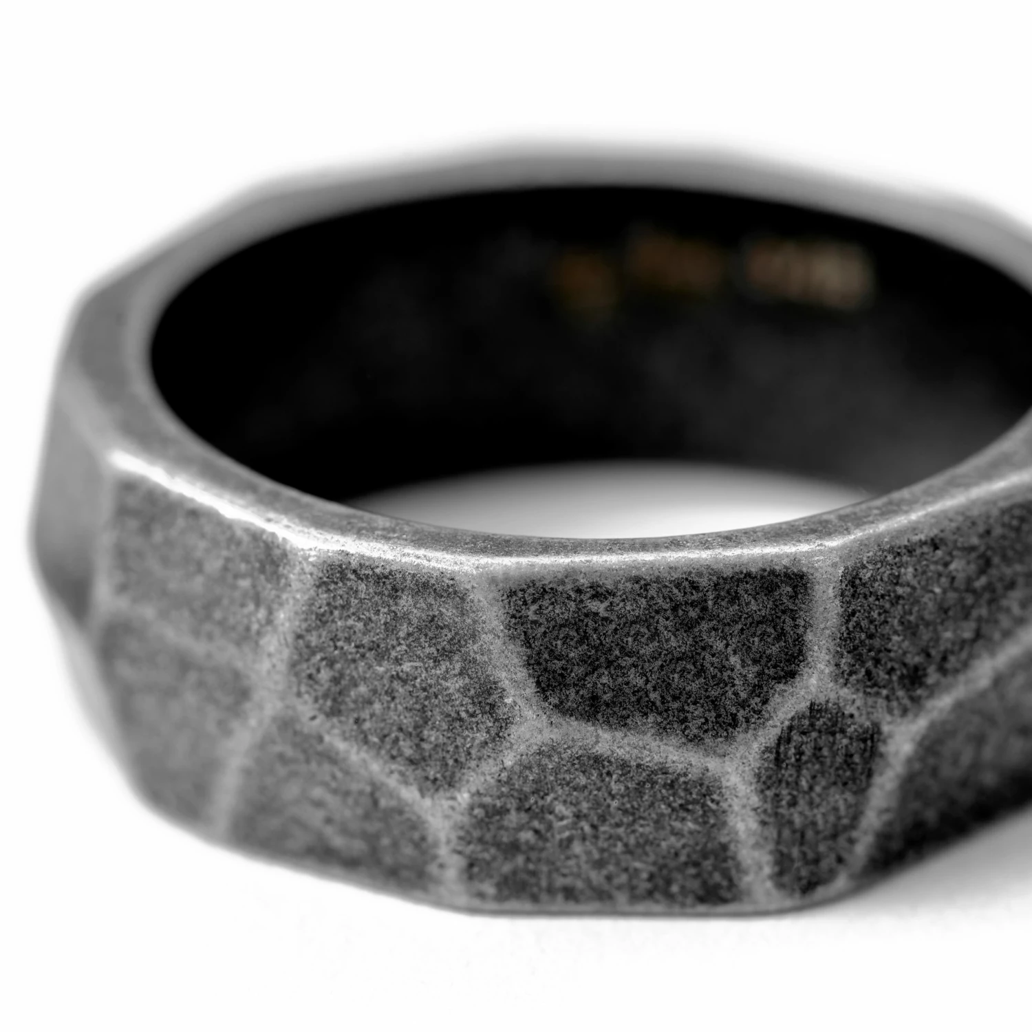 Si vous êtes à la recherche d’une bague discrète qui se fera à peine remarquer… continuez vos recherches ! Cette bague massive est tout sauf furtive. Fabriquée en acier inoxydable, ses nombreuses facettes capteront la lumière sous de nombreux angles différents. L’histoire qu’elle racontera ne dépendra que de vous.