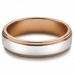 Lucleon Ferrum | Anneau couleur or rose Ă bande centrale argentĂ©e en mĂ©tal poli – 6 mm