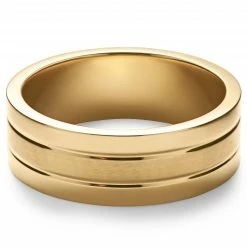 Lucleon Ferrum | Anneau Ă double rainure en acier inoxydable dorĂ© brossĂ© et poli – 8 mm