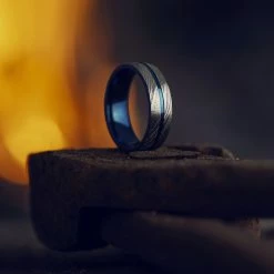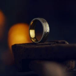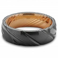 Lucleon Fortis | Bague en acier Damas argentĂ© avec incrustation en Ĺ“il de tigre – 7 mm