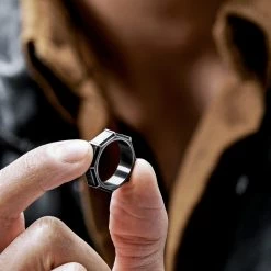 Lucleon Aras | Chevalière pour l’auriculaire en acier doré avec pierre agate mousse