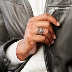Moody Mason Anneau à facettes en acier gris foncé Jax