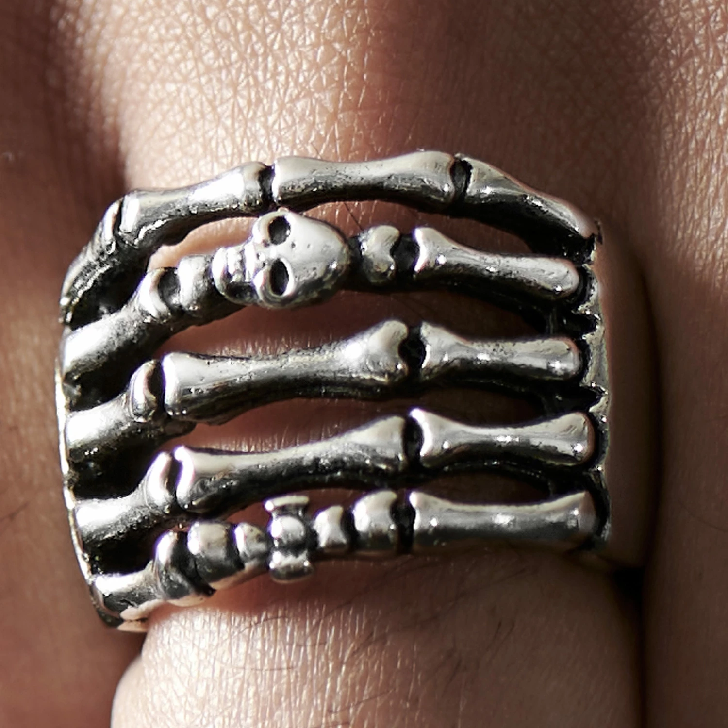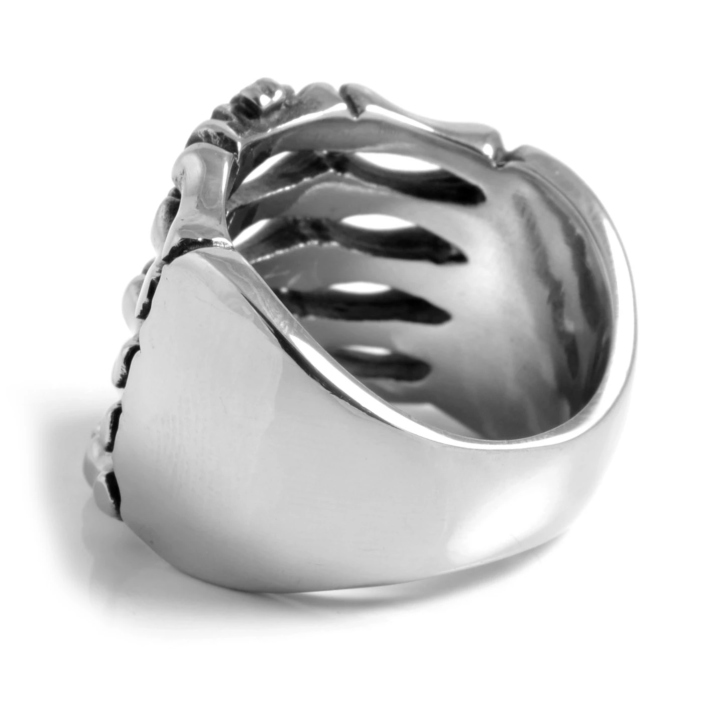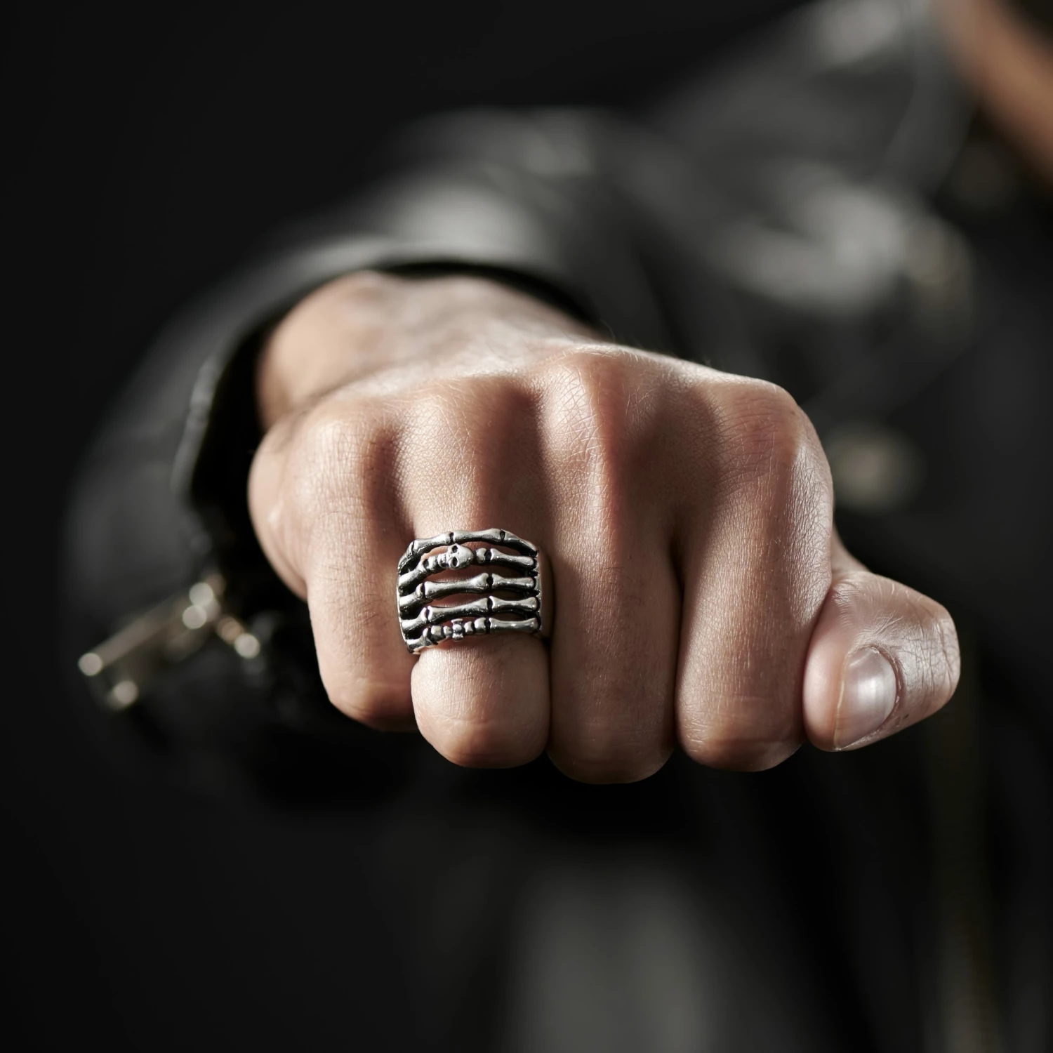 C’est l’un de nos anneaux en acier le plus détaillé. Il est fabriqué avec une grande précision ce qui rend les doigts squelettiques incroyablement détaillés et précis. Vous pouvez voir votre propre doigt dans les interstices des doigts squelettiques, cela donne un effet incroyablement unique a cette chevalière.